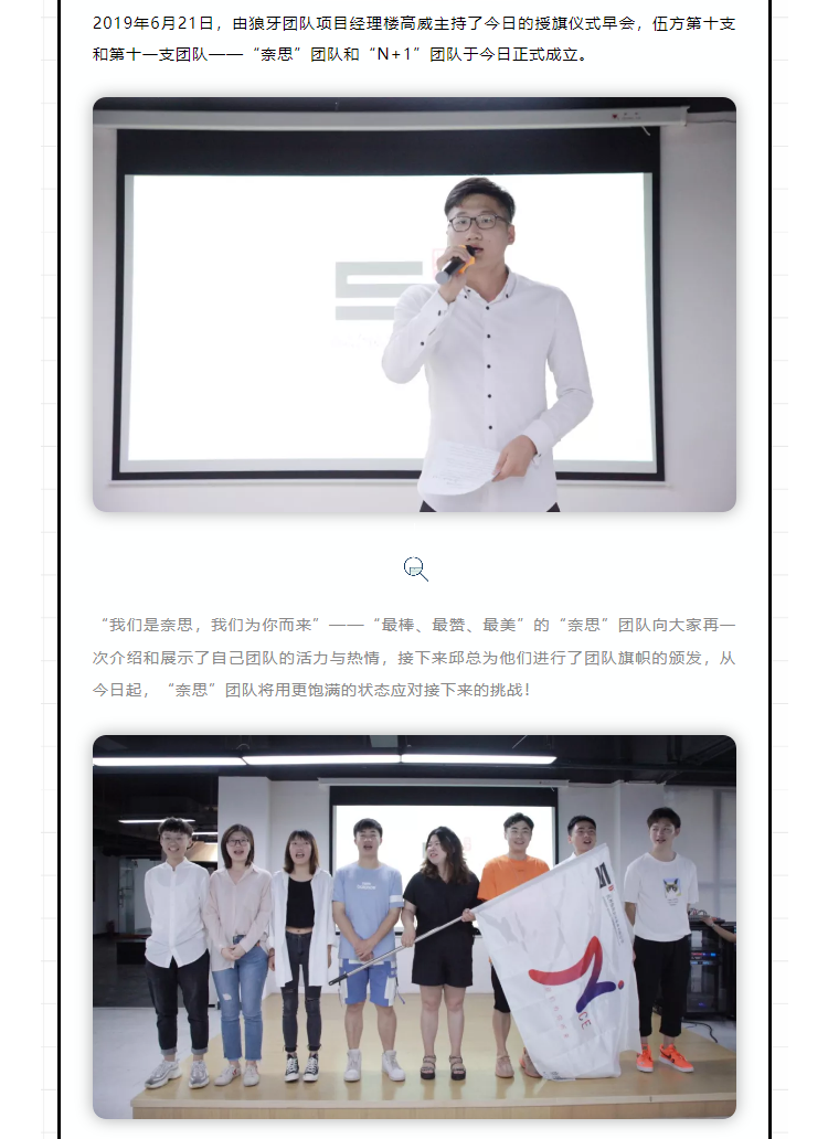 伍方資訊丨奈思團(tuán)隊、N+1團(tuán)隊授旗儀式