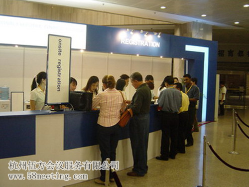 注冊臺是保證現(xiàn)場注冊順利的重要條件之一,會議組織者應(yīng)該多次到會議舉辦地點(diǎn)認(rèn)真考察,制定出合理的搭建方案。