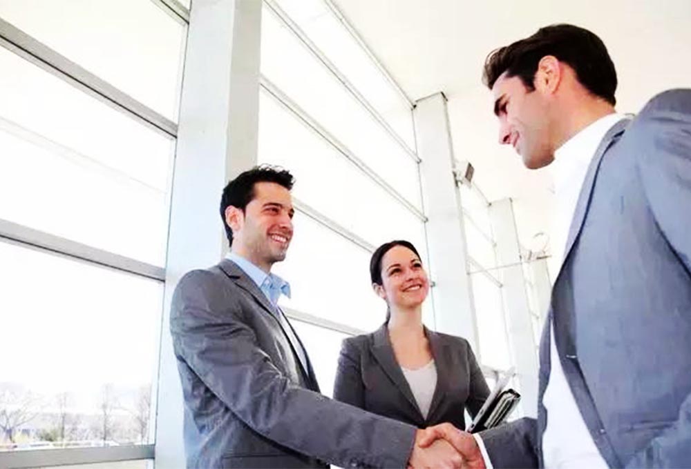 ▲商業(yè)合作握手