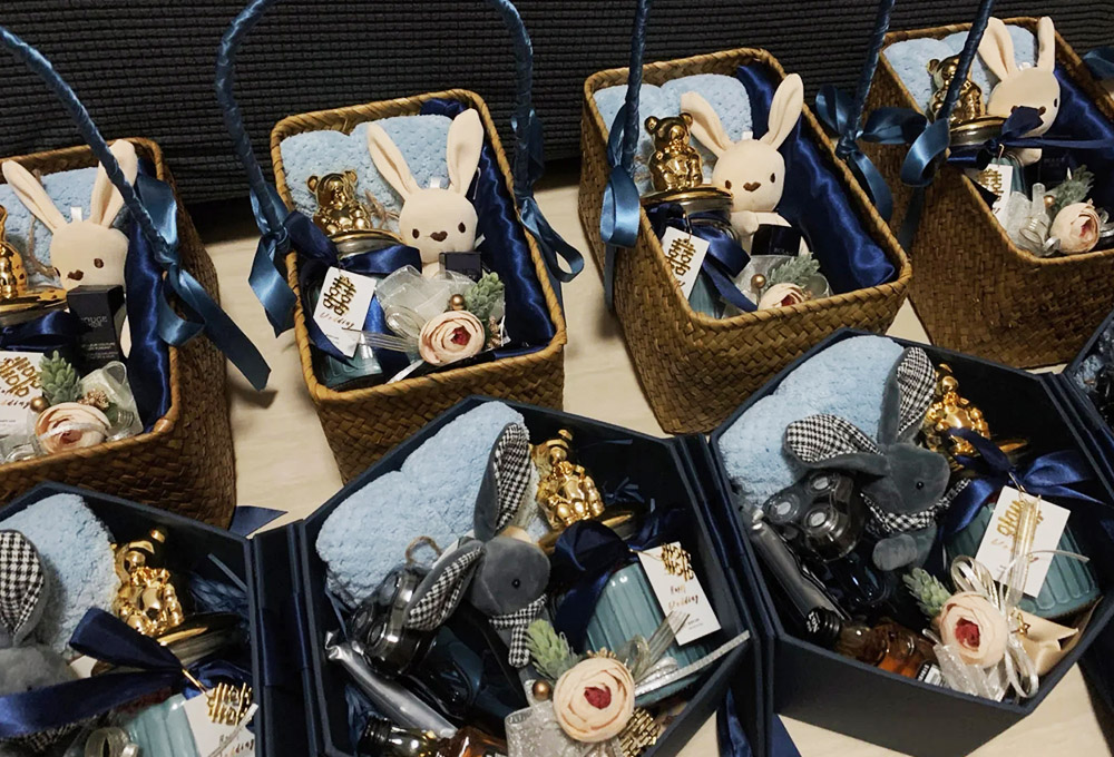 ▲藍(lán)色系手提籃和盒子伴手禮