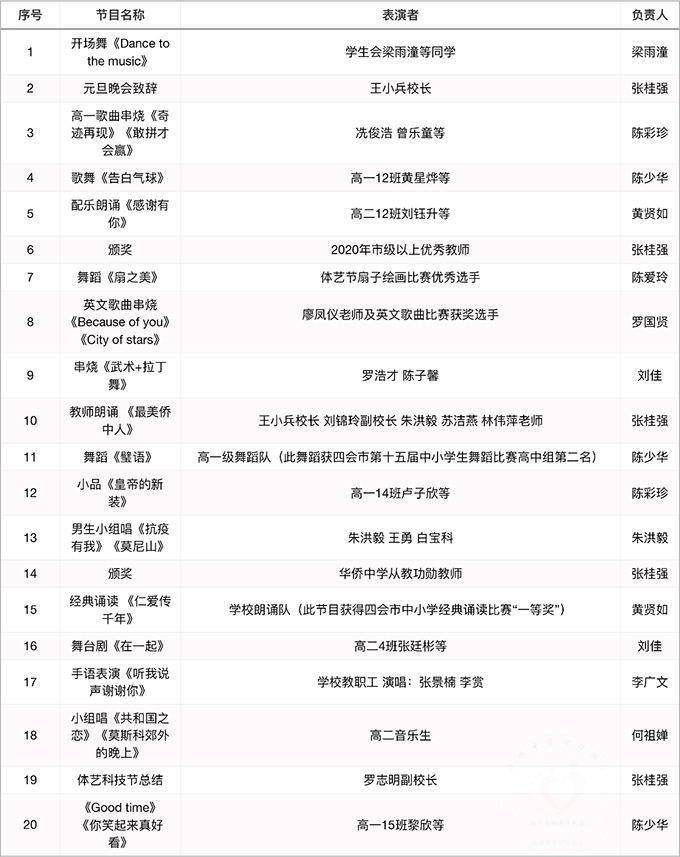 校園元旦晚會(huì)節(jié)目單